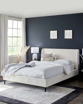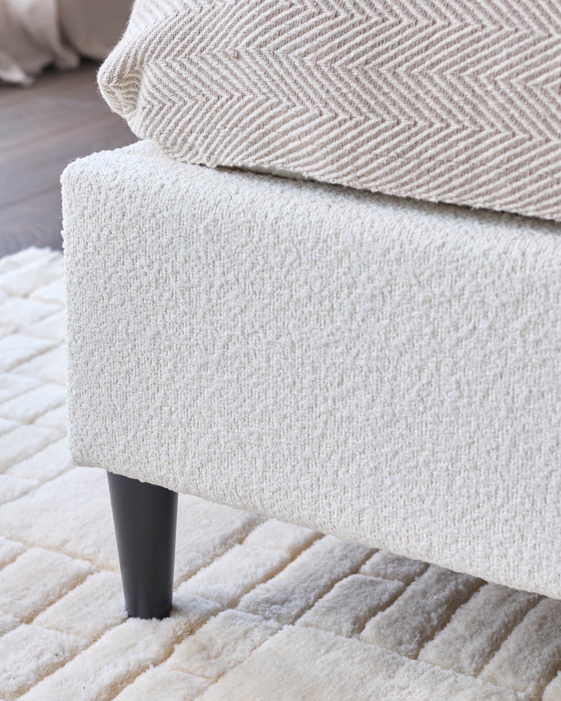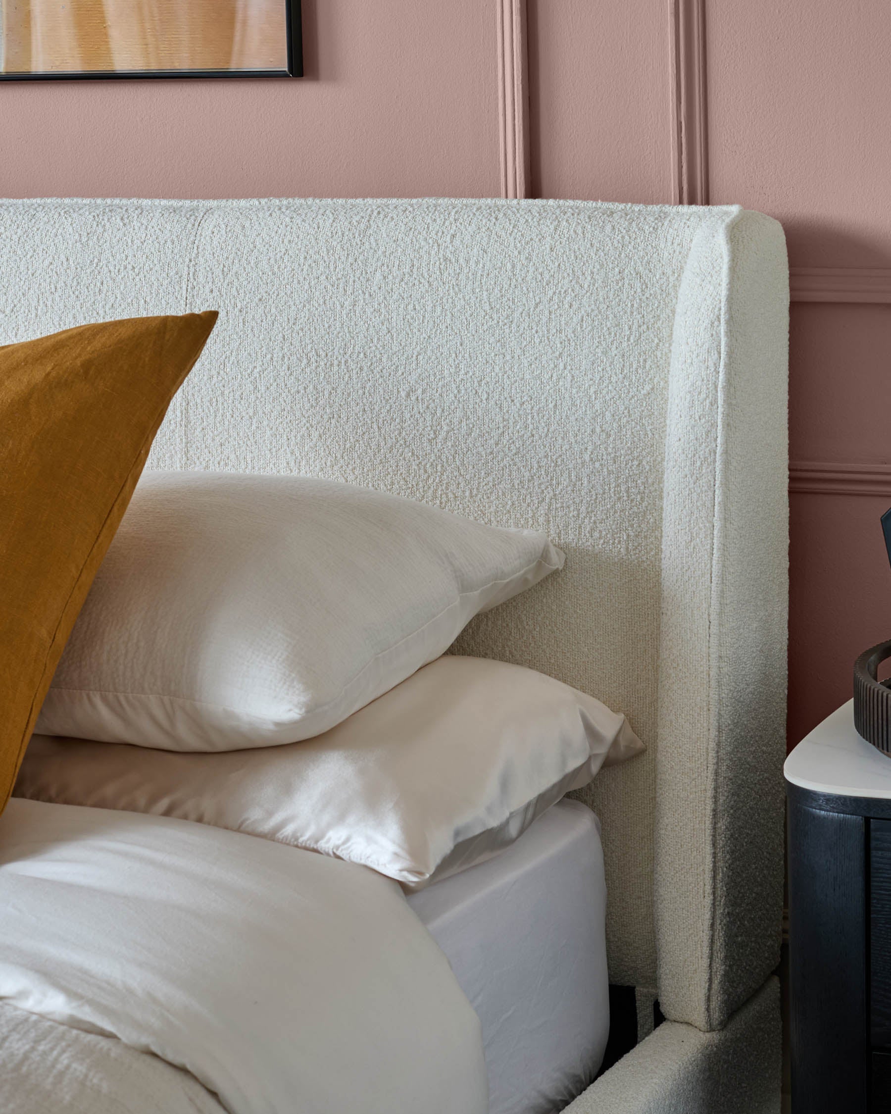 The Paolo king size bed brings together comfort and contemporary style with its luxuriously soft ivory boucle upholstery. The tall, curved headboard creates an inviting focal point in your bedroom, while the low footboard maintains a modern, uncluttered look. Built with sprung slats and webbing plus an adjustable centre support, this bed provides the perfect foundation for restful nights.