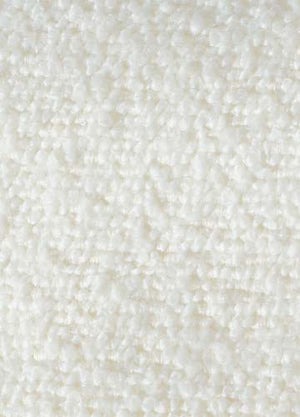 Close-up of an off-white textured fabric armchair or headboard, showcasing the soft, looped material and rounded edge detail.