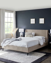 - Tall, supportive headboard with subtle wings