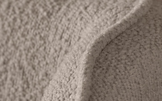 - Soft, textured boucle fabric in natural cream