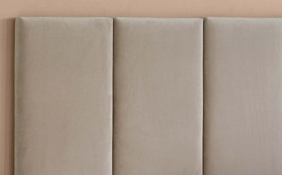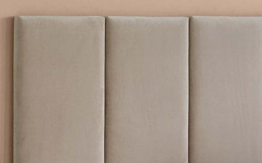 The Penelope champagne recycled velvet small panel headboard offers endless possibilities for creating your perfect bedroom sanctuary. This versatile panel can be hung vertically or horizontally using the French cleat system, allowing you to build a bespoke headboard configuration. Upholstered in sumptuous recycled velvet with generous foam filling, it brings sustainable luxury and comfort to your space.