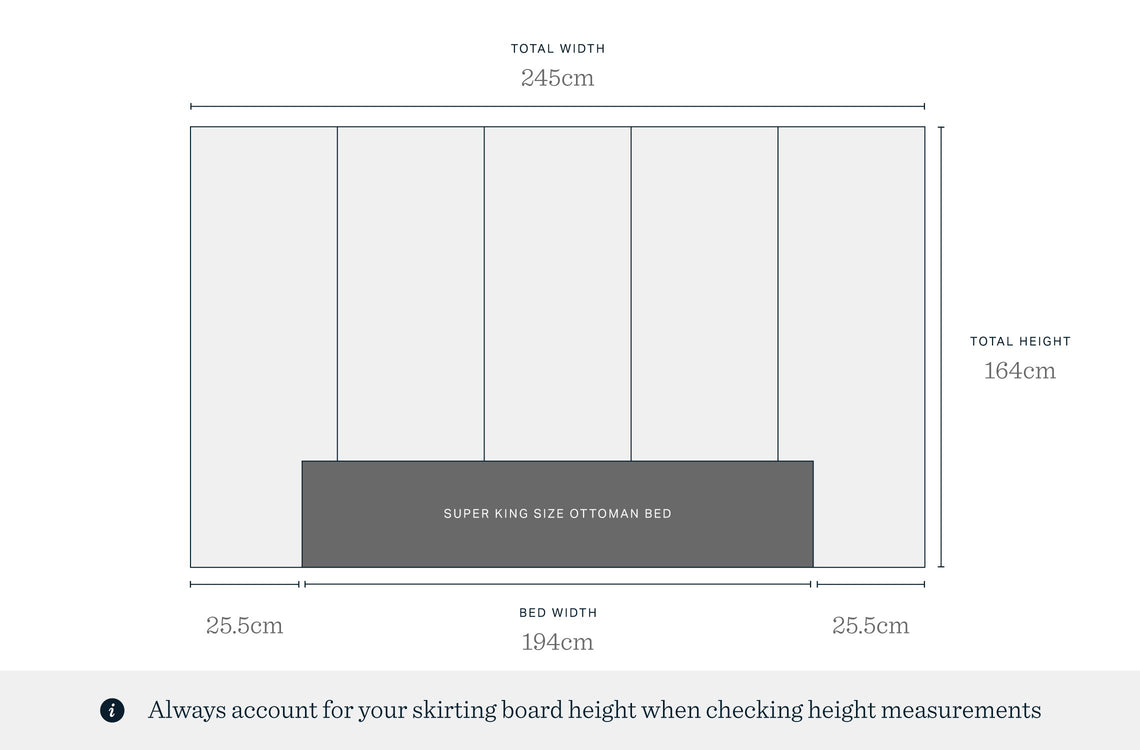 - Size: W: 194cm x D: 221cm x H: 164cm (vertical headboard)