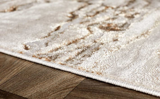 The Perla gold textured large rug brings understated glamour to your space with its captivating watercolour-style design and subtle shimmer. Crafted from durable synthetic fibres with metallic yarn woven throughout, this 290cm x 200cm statement piece creates instant warmth. Perfect for living rooms, bedrooms or dining areas where style meets practicality.