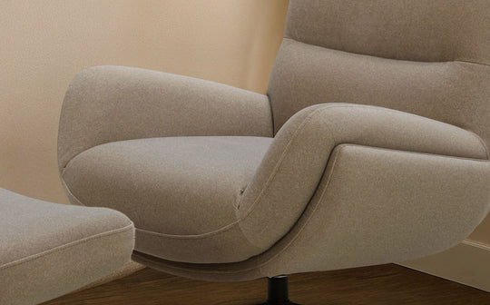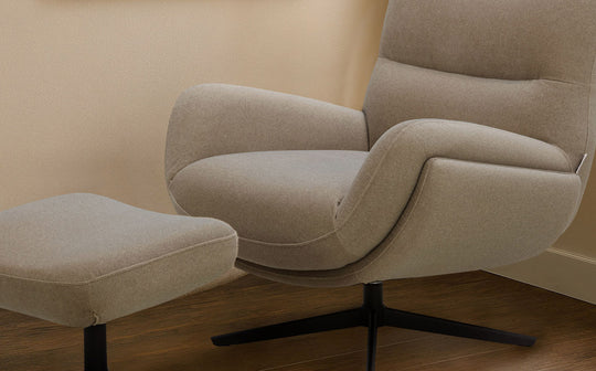 Transform your living space with the Piper mocha fabric occasional chair with footstool - a thoughtful blend of contemporary design and marshmallow-soft comfort. Perfect for creating your own reading corner or adding a sophisticated accent to any room, this swivel chair invites you to sink in and unwind. The matching footstool completes your relaxation zone, making those Sunday mornings stretch effortlessly into afternoons.
