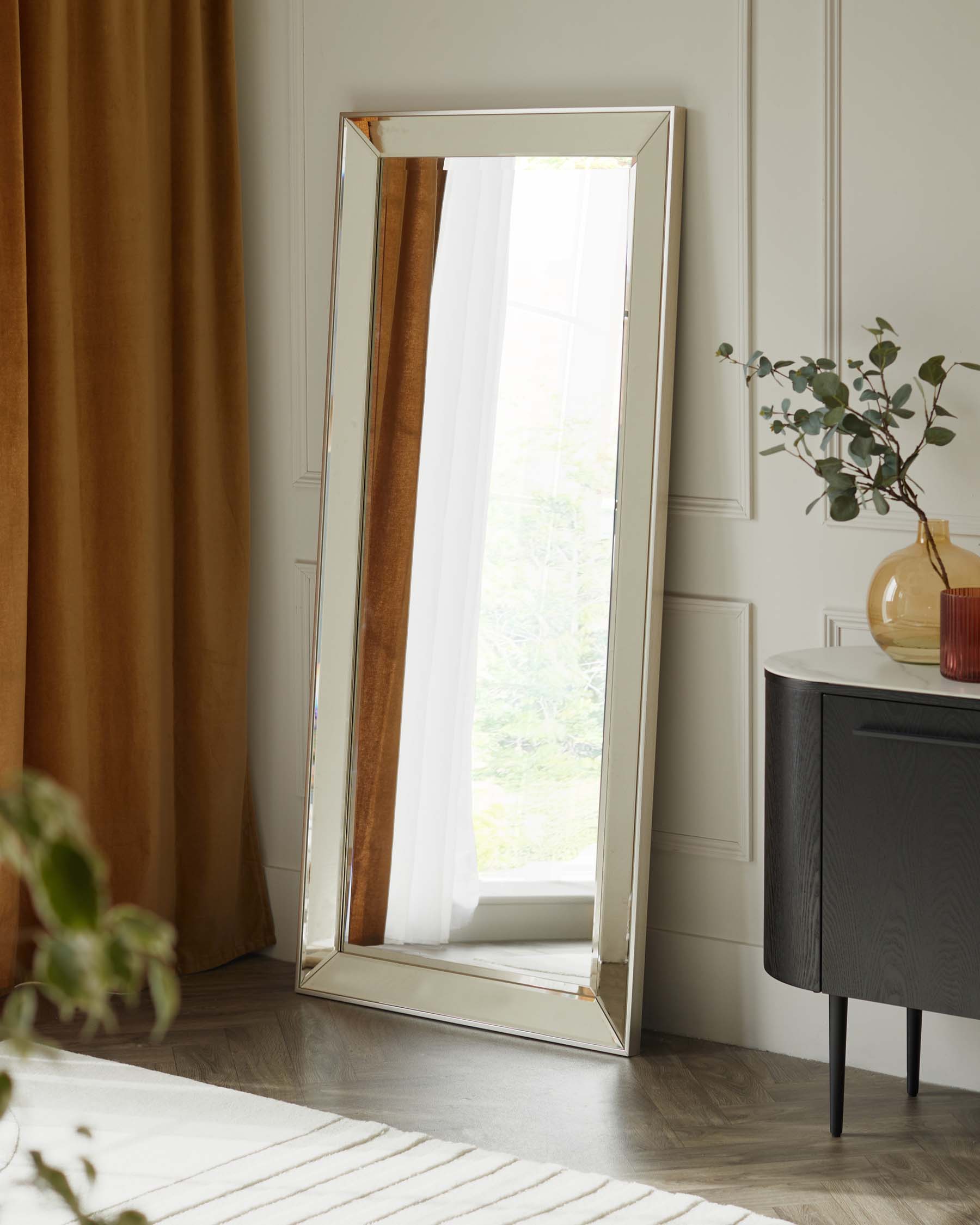 Transform your space with the Regency large full length leaner mirror, a statement piece that brings light, depth and sophistication to any room. Its generous proportions and antique silver frame create an instant focal point, whether propped against a bedroom wall or secured in your hallway. The bevelled glass edge adds an extra layer of refinement to this timeless design.