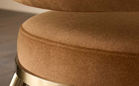 The Rhett caramel fabric dining chair brings sophisticated comfort to your dining space with its intriguing mix of materials and thoughtful design. Luxuriously soft caramel fabric covers the generously cushioned seat and backrest, while fully upholstered front legs create smooth, continuous lines. Sleek steel back legs add a contemporary contrast, making this chair perfect for long dinner parties or casual morning coffees.