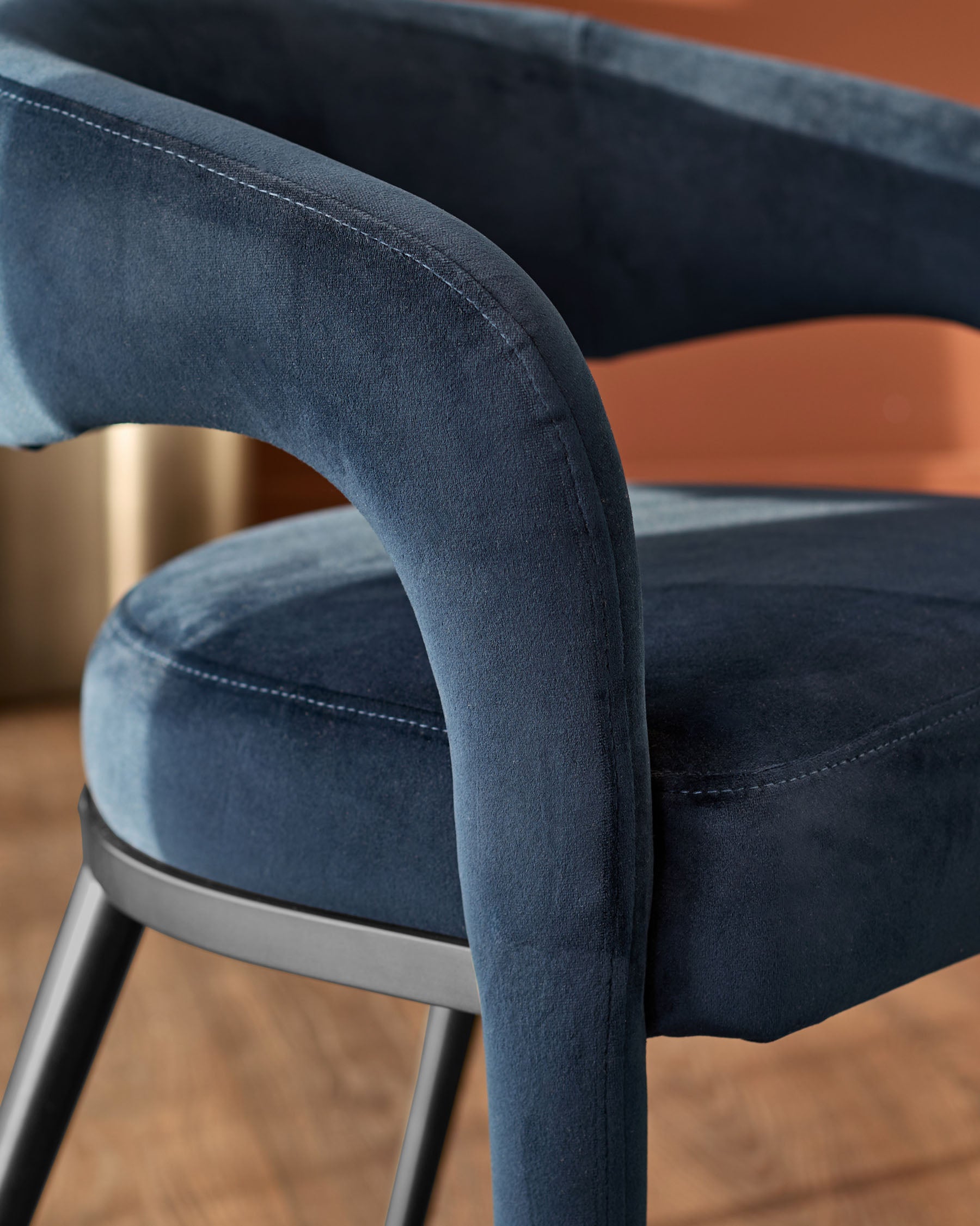 - Dark navy velvet upholstery