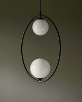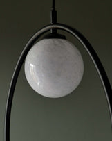 Create a captivating focal point with the Riley marble look glass 2 light adjustable pendant. Two hand-blown glass orbs with striking marble effect suspend from a sleek black metal frame, casting a soft, ambient glow. Adjustable cable lengths let you customise each light's height, making it perfect for dining spaces, living rooms or hallways.