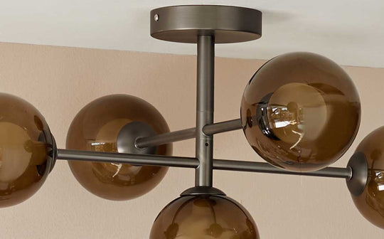 The Riley semi-flush pendant light is an exclusive Danetti design, sure to brighten any space. Featuring a sleek satin nickel frame and hand-blown mocha glass bauble shades, this contemporary light fixture offers a modern yet inviting feel. The tinted glass diffuses light beautifully, creating a warm and ambient glow. The adjustable cable lengths allow you to customise the height to perfectly suit your space, making it a versatile choice for rooms with lower ceilings. The Riley pendant light's contemporary design complements various interior styles, from minimalist to mid-century modern. It works beautifully in hallways, living rooms, or dining areas, adding a touch of modern elegance.Details
