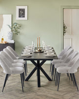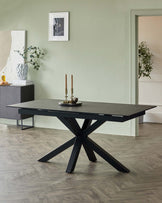 Make every meal memorable with the Riley dark grey ceramic extending 8 to 10 seater dining table. Its striking starburst pedestal base creates visual drama while maximising legroom for comfortable seating. The scratch and heat-resistant ceramic top features a sophisticated marble-effect finish that stands up to daily life. When guests arrive, simply slide out the smooth extension mechanism to seat up to 10 people comfortably.