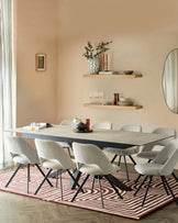 Make every meal memorable with the Riley light grey ceramic 8 seater dining table. Its striking starburst pedestal base creates visual drama whilst maximising legroom for comfortable dining. The light grey ceramic top brings contemporary sophistication with its concrete-effect finish - scratch and heat-resistant for worry-free entertaining. Perfect for dinner parties or family gatherings.