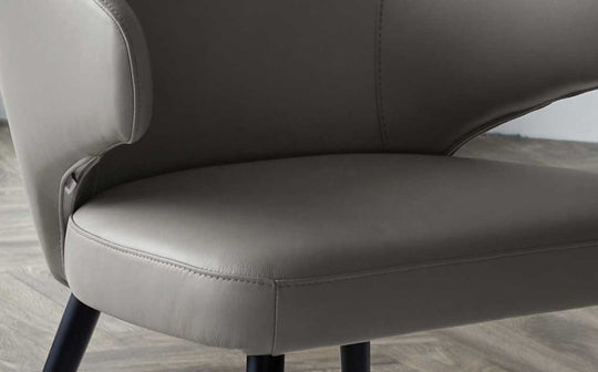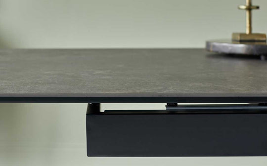 The Riley 8 seater table and 8 Landon dark grey dining chairs set brings contemporary sophistication to your dining space. The Riley table's striking starburst leg design creates an architectural focal point, while the dark grey ceramic top with its modern marble effect provides a durable surface for everything from weekday breakfasts to weekend dinner parties. Paired with 8 Landon chairs upholstered in genuine dark grey leather, this set offers cushioned comfort for long, leisurely meals.
