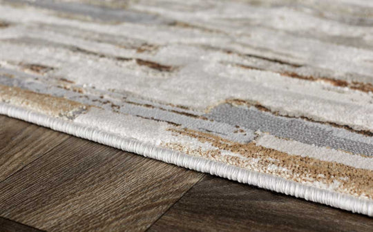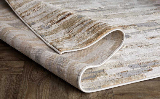 The Rowan mixed metallics textured small rug brings sophisticated texture and subtle shimmer to your floors. Its abstract linear pattern in cream, beige, light grey and taupe creates visual depth, while mixed metallic yarns catch the light beautifully. Perfect for living rooms, dining spaces or bedrooms where you want understated elegance with practical durability.