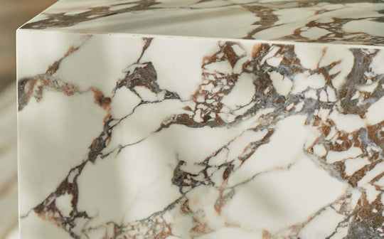 Effortlessly sophisticated, the Russo white calacatta ceramic coffee table brings modern luxury to your living space. Its striking cubic design and marble-effect ceramic surface create a centrepiece that's both beautiful and built for real life. Place hot drinks directly on the heat-resistant surface, knowing spills wipe away easily from this practical yet stunning piece.