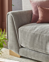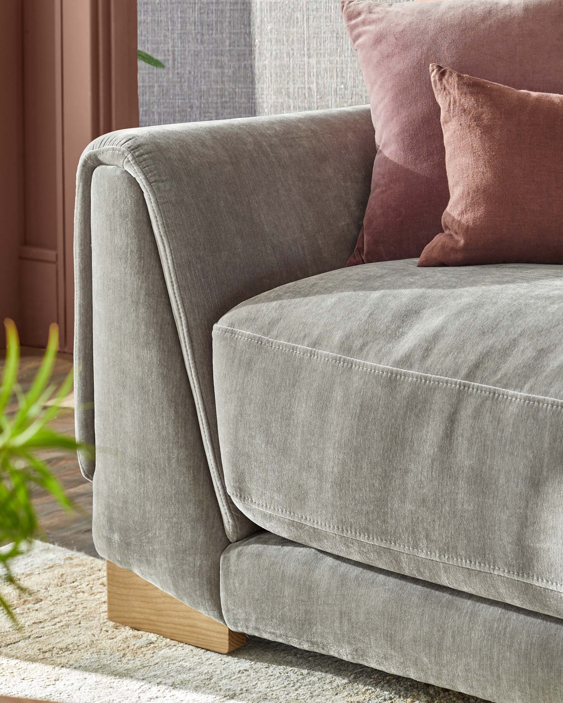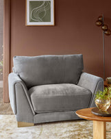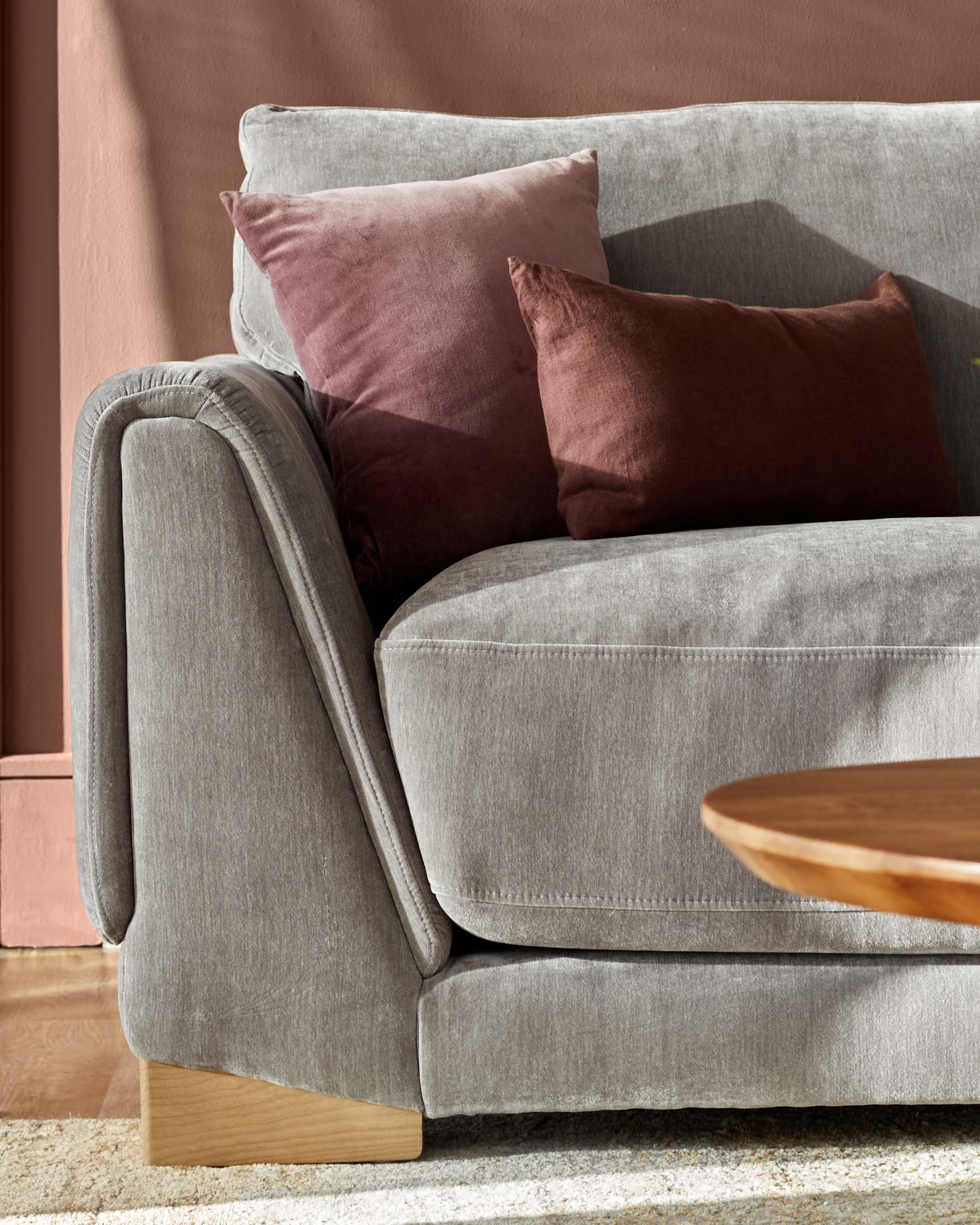 The Saige mid grey fabric armchair brings together classic comfort and contemporary style in one beautifully crafted piece. Its generous proportions and full-bodied cushioning create the perfect spot for curling up with a book or settling in for an evening's relaxation. The gently angled arms wrap around to provide exceptional support, while natural wood legs add warmth to any living space.