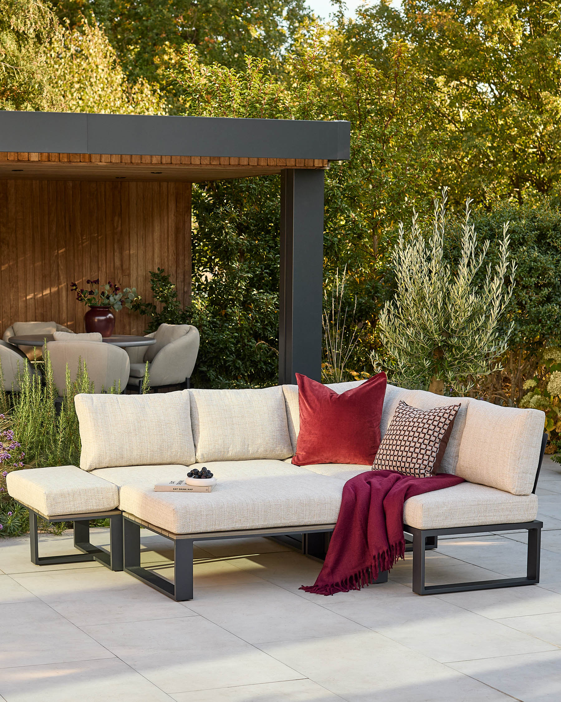 - Water-resistant cushions with fire-retardant treatment