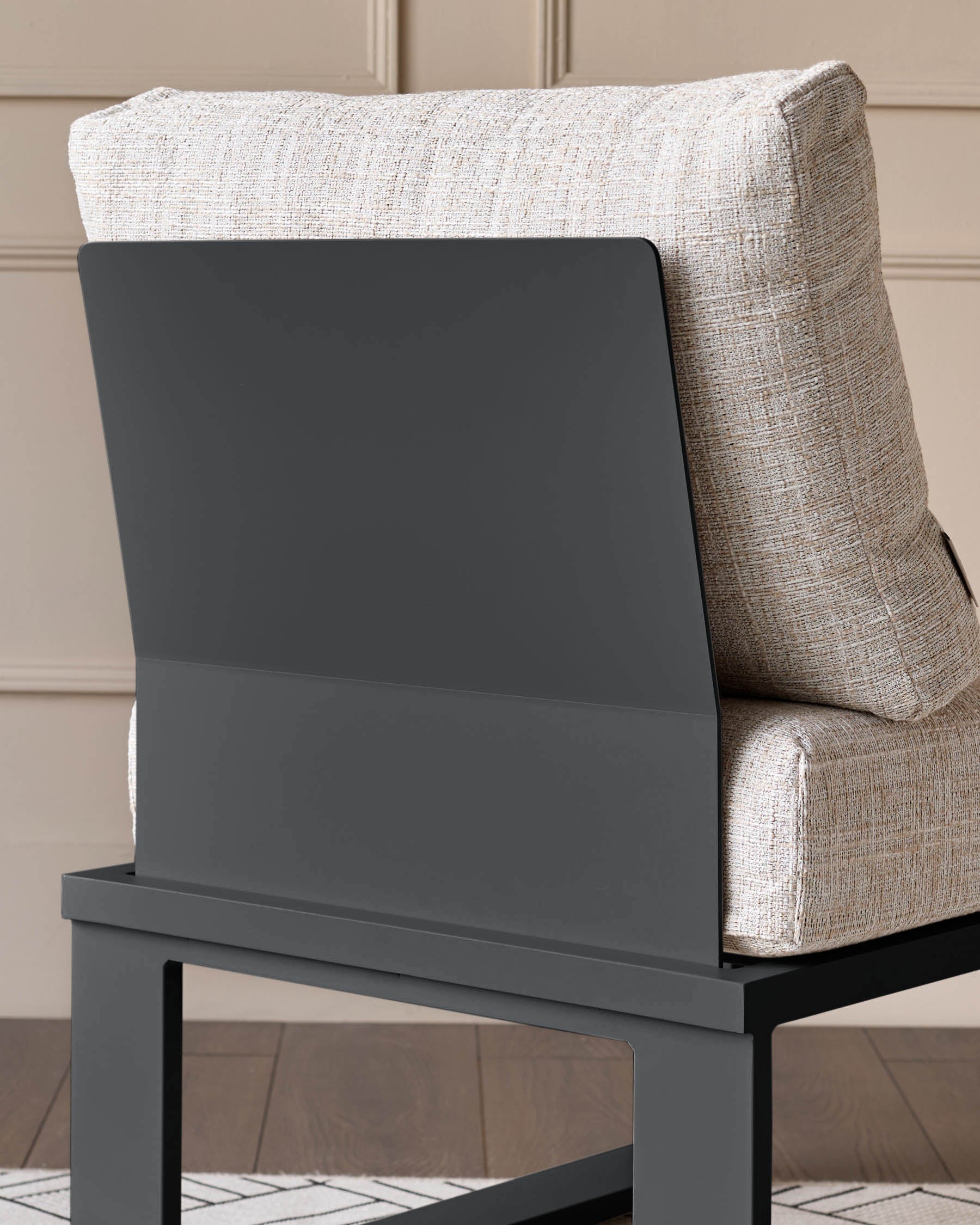 - Black powder-coated metal frame with natural flat weave