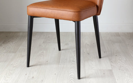 Thoughtfully designed for real life, the Serena tan faux leather dining chair brings sophisticated comfort to every meal. The generously padded seat and supportive back feature elegant chevron quilting, while the durable faux leather upholstery handles everything from morning coffee to dinner parties. Sold in pairs, these versatile chairs complement any dining table style.