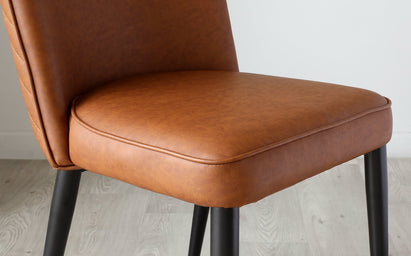 Thoughtfully designed for real life, the Serena tan faux leather dining chair brings sophisticated comfort to every meal. The generously padded seat and supportive back feature elegant chevron quilting, while the durable faux leather upholstery handles everything from morning coffee to dinner parties. Sold in pairs, these versatile chairs complement any dining table style.