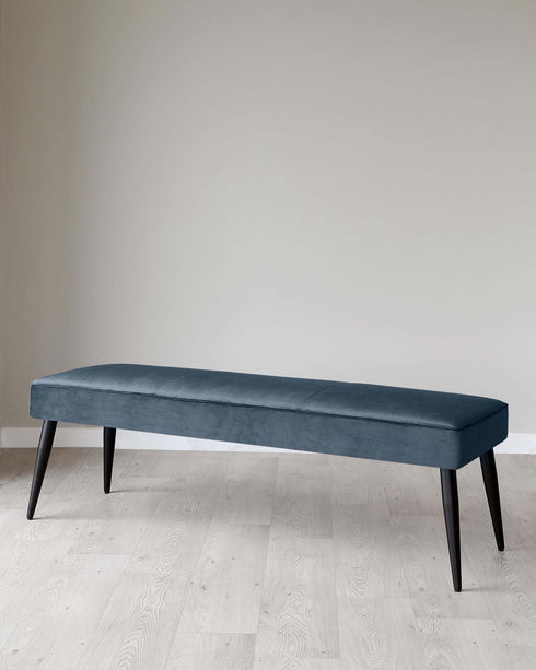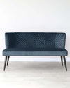 The Serena dark blue velvet 3 seater dining bench brings sophisticated comfort to your dining space. Upholstered in sumptuous dark blue velvet with elegant chevron quilting on the backrest, this bench seats 3 comfortably. Perfect for creating a more intimate, relaxed dining atmosphere or maximising seating when entertaining.