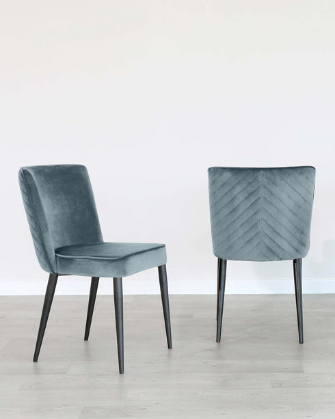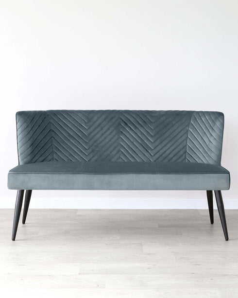The Serena blue grey velvet bar stool brings sophisticated comfort to your kitchen island or breakfast bar. Its distinctive quilted chevron backrest creates visual interest from every angle, while plush velvet upholstery invites you to linger over morning coffee or evening drinks. The powder-coated steel legs provide rock-solid stability for those moments when conversation flows as freely as the wine.