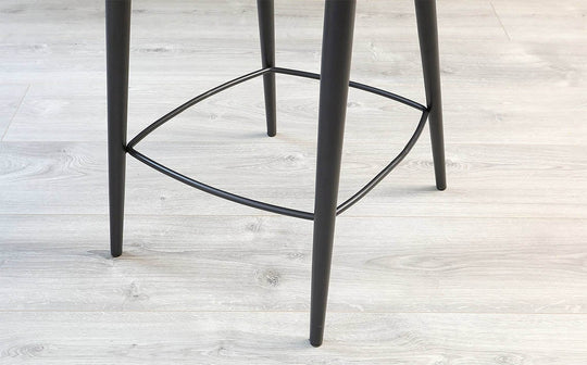The Serena champagne velvet bar stool brings sophisticated comfort to your kitchen island or breakfast bar. Upholstered in plush champagne velvet with eye-catching quilted chevron detailing, this fixed-height stool creates an inviting focal point. Sleek powder-coated steel legs provide sturdy support while the generously cushioned seat ensures comfortable morning coffees and evening gatherings.