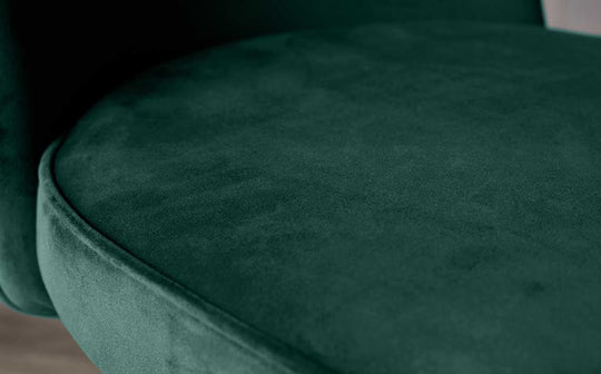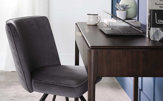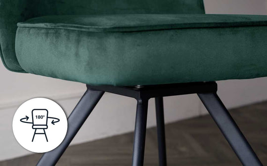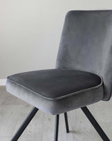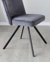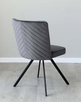 Smart seating that works as hard as you do. The Serena dark grey velvet swivel chair brings sophisticated comfort to your home office or dining space. Plush velvet meets practical design with a clever self-return swivel mechanism that keeps you perfectly positioned. The quilted chevron backrest adds visual interest while splayed wooden legs create a contemporary silhouette that's both striking and stable.
