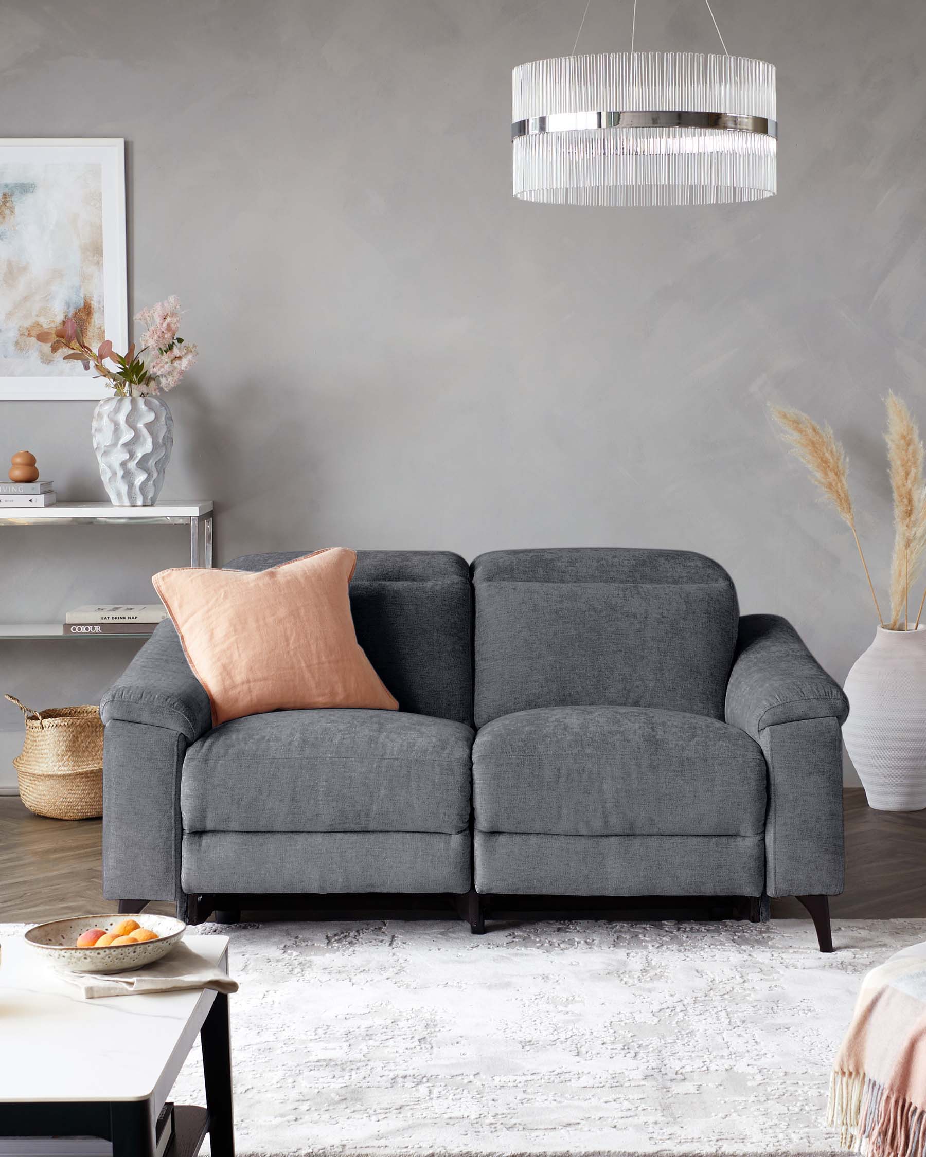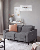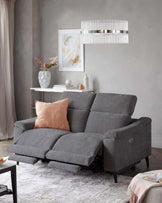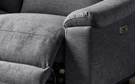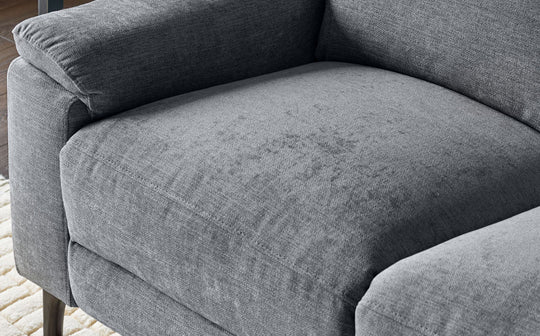 The Serene blue grey chenille 2 seater recliner sofa brings cinema-level comfort to your living room. Upholstered in soft chenille with a calming blue-grey tone, this electric recliner features adjustable headrests for personalised comfort. Dark wood legs add a classic touch to the contemporary design, making it perfect for cosy evenings and lazy Sunday afternoons.