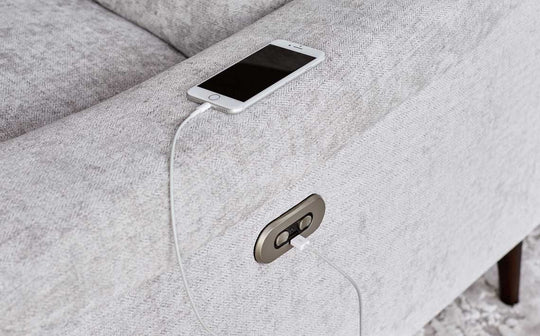 The Serene grey fabric 3 seater recliner sofa brings modern comfort to your living space with its electric tilt function and integrated USB charging ports. Upholstered in soft woven chenille fabric, this contemporary piece combines clean lines with practical luxury. Perfect for film nights or lazy Sunday afternoons, it effortlessly adjusts to your ideal relaxation position.
