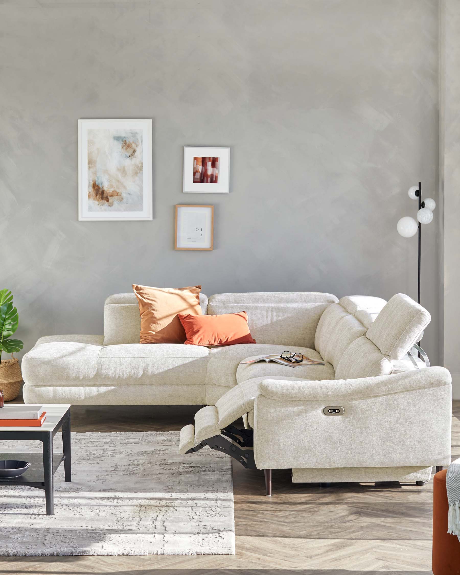 Thoughtfully designed for the way you actually live, the Serene dark wood left hand corner chaise recliner sofa transforms your living room into a haven of comfort. This generous corner sofa combines soft ivory chenille upholstery with electric reclining functionality and adjustable headrests, creating personalised comfort for movie nights and lazy Sunday afternoons. Built-in USB charging ports keep you connected while you unwind.