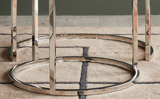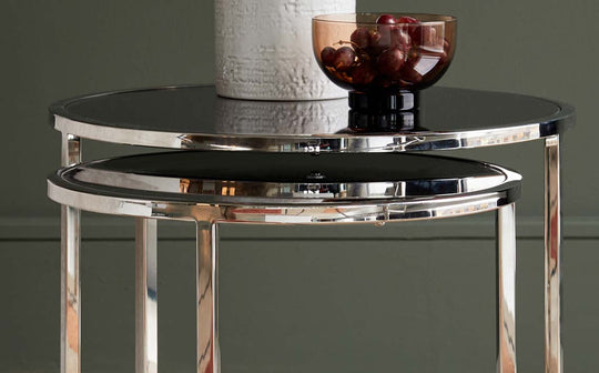 The Thea smoked mirror nest of tables brings sophisticated versatility to your living space. These cleverly designed nesting tables feature sleek smoked mirror surfaces that catch and reflect light beautifully, while polished stainless steel legs add contemporary elegance. Perfect for smaller spaces, they nest neatly together when not needed, yet separate easily for entertaining or everyday use.
