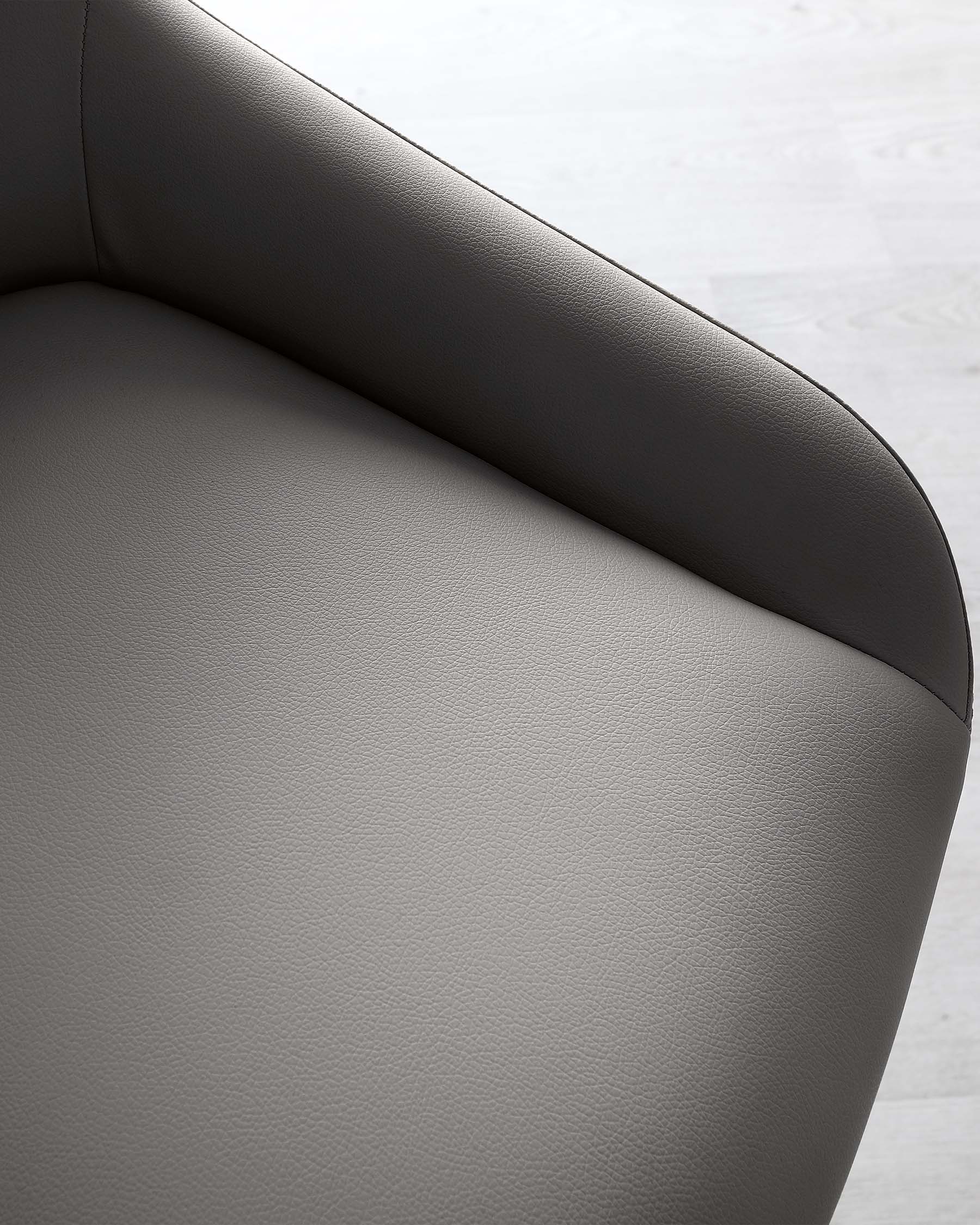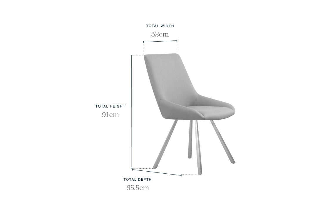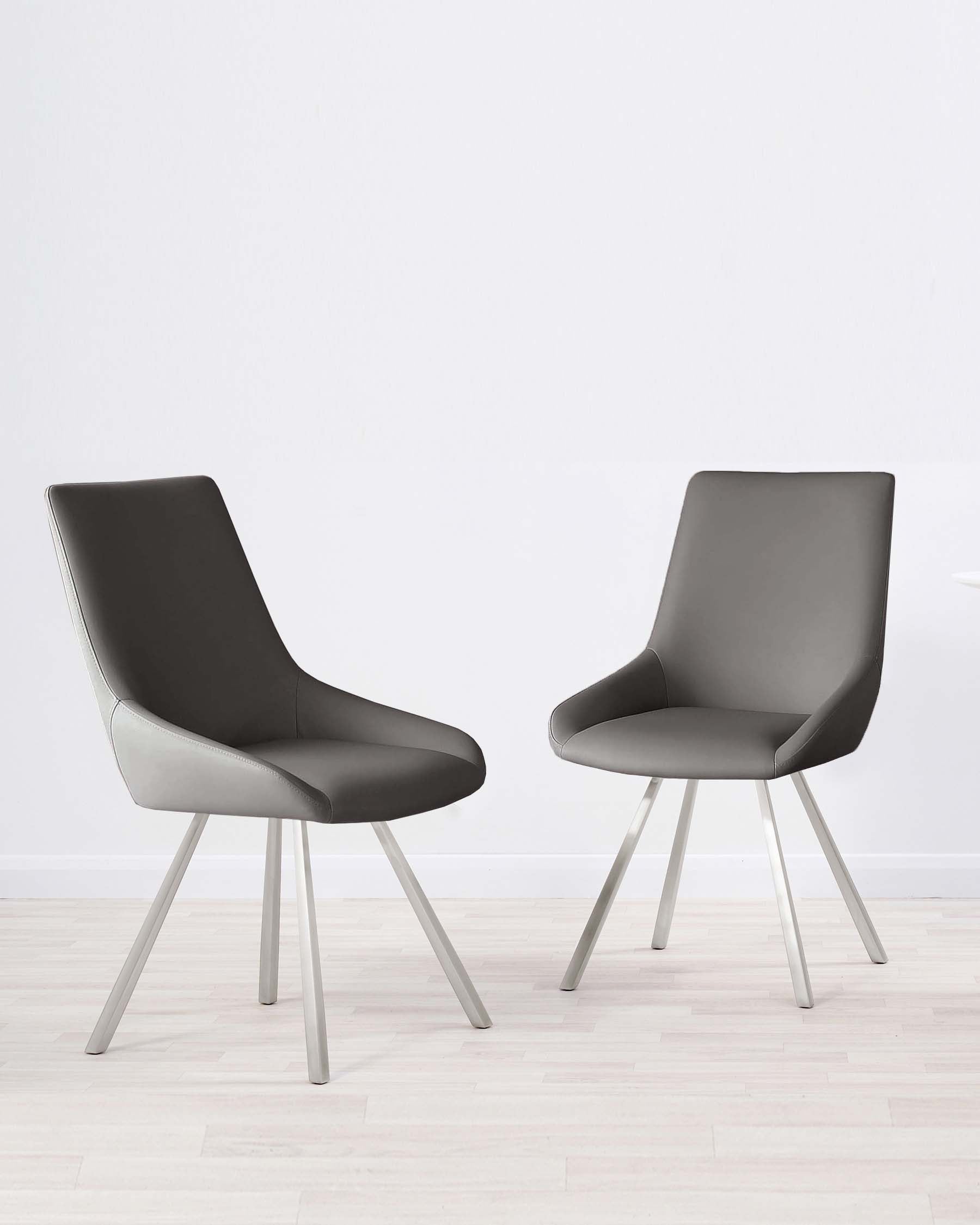 The Theo dark grey faux leather dining chair brings sophisticated comfort to mealtimes. Its gently curved backrest and padded seat create exceptional support, while the sleek brushed stainless-steel legs add contemporary style. Upholstered in premium Durosoft faux leather, these chairs are built for real life - tough enough for daily use, beautiful enough for dinner parties. Sold in pairs.