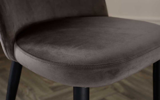 Effortlessly sophisticated, the Trinny mocha plush velvet dining chair brings warmth and modern elegance to your dining space. Its curved back and cushioned seat create the perfect spot for long dinner parties and Sunday morning coffees. Sold in pairs, these versatile chairs work beautifully around contemporary tables or as accent seating.