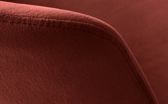 - Rich toffee red recycled velvet upholstery