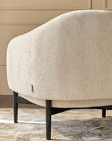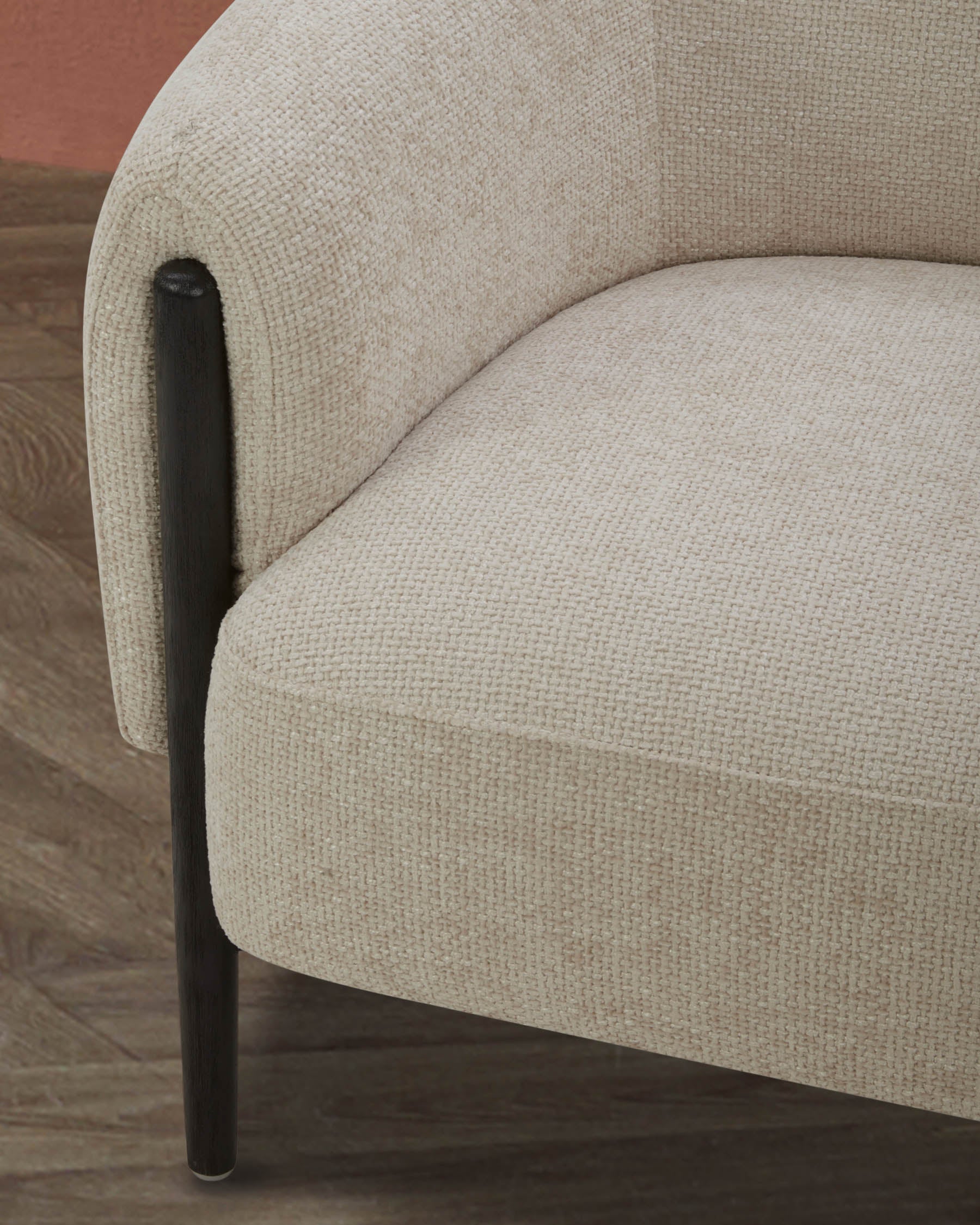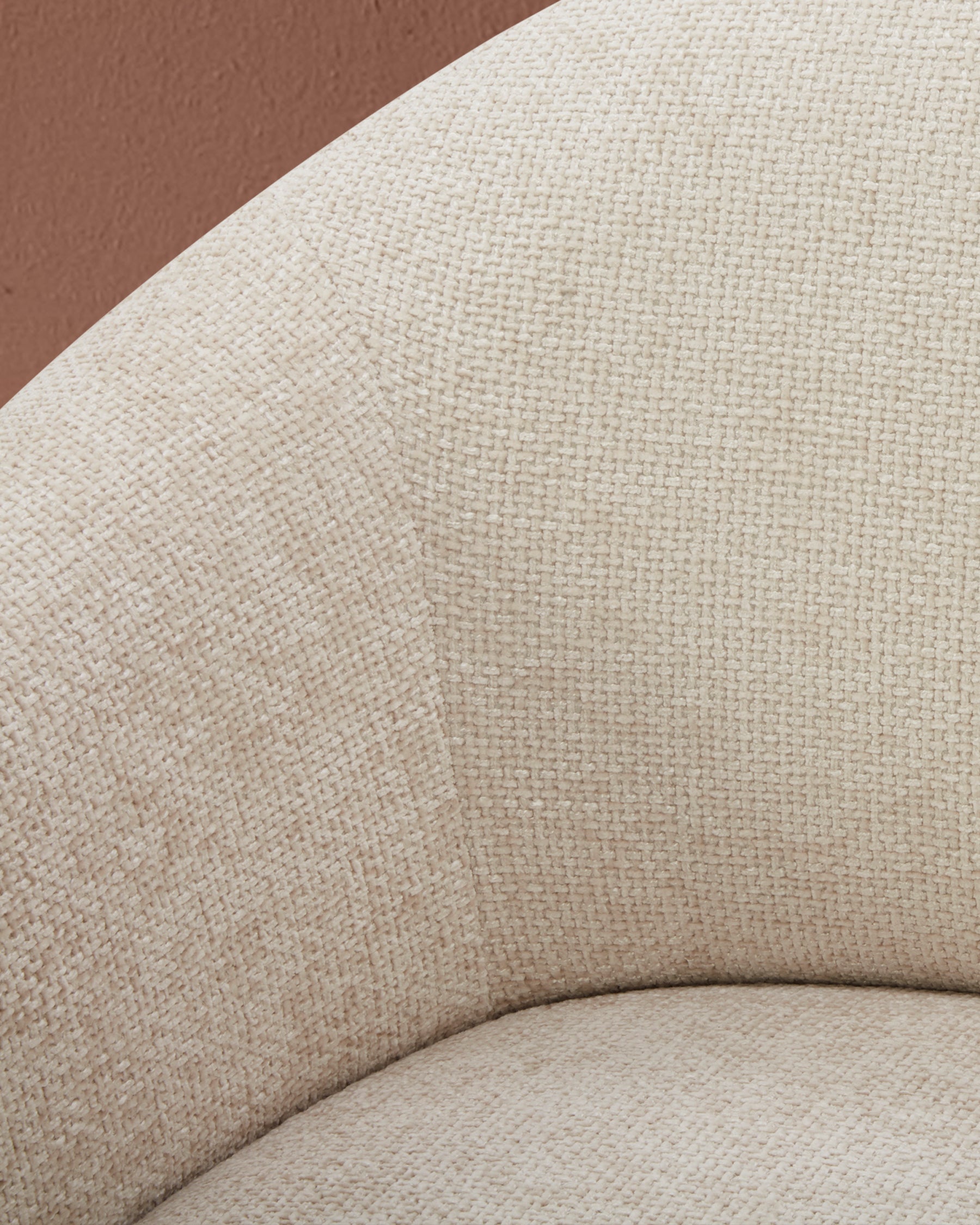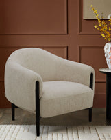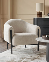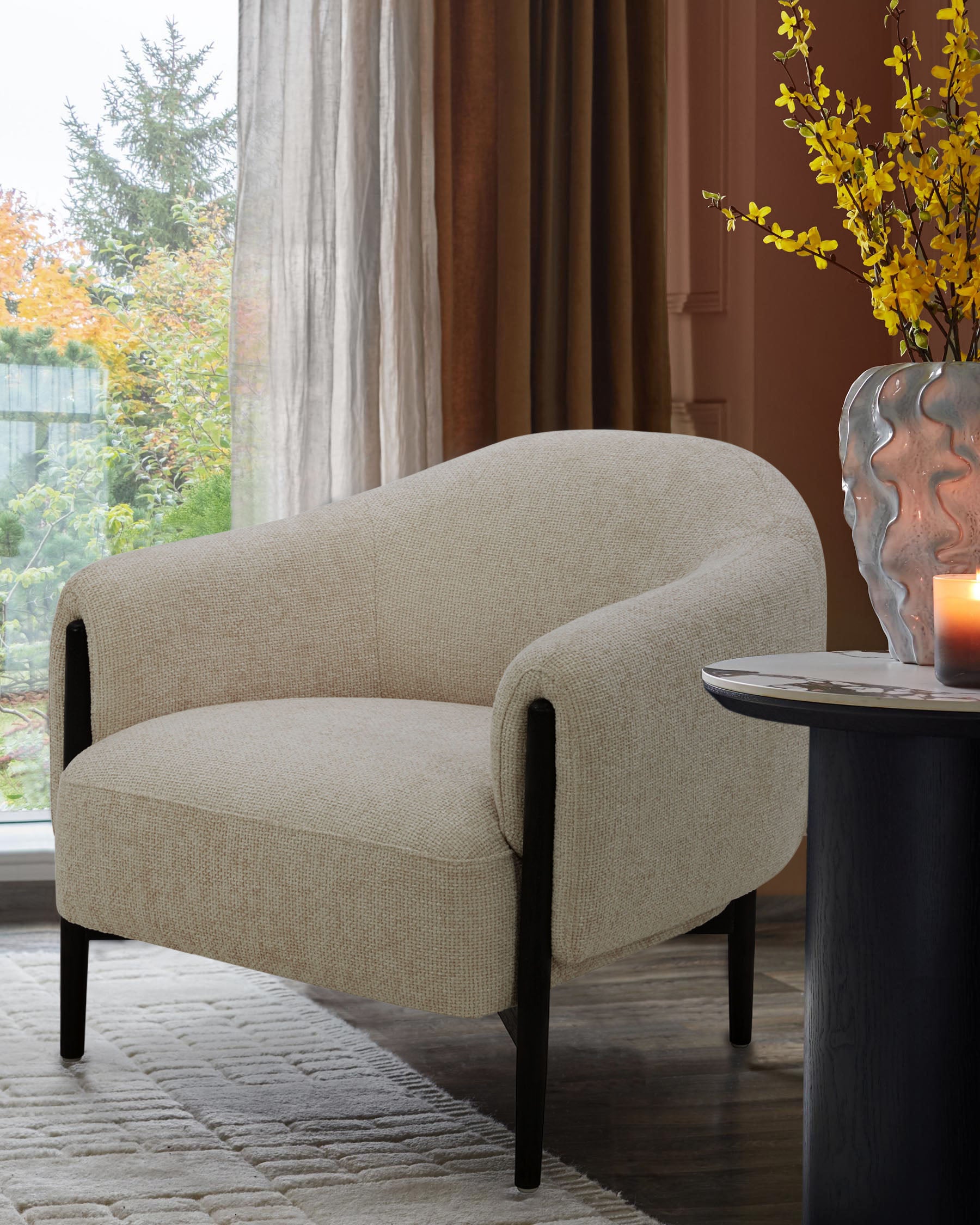 The Tristan natural fabric accent chair brings understated sophistication to any corner of your home. Wrapped in chunky woven chenille fabric in a warm cream tone, this generously proportioned chair invites you to settle in with its curved armrests and supportive cushioning. Perfect for creating a cosy reading spot or adding extra seating to your living space.