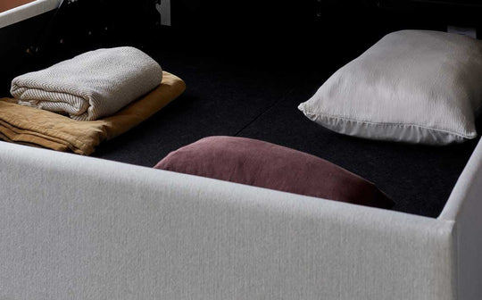 Transform your bedroom into a serene retreat with the Turin ivory double ottoman bed. Its clean lines and luxurious dual-tone fabric create timeless style, while the deep padded headboard provides exceptional comfort for reading or relaxing. Hidden beneath lies generous ottoman storage accessed via smooth hydraulic pistons - perfect for bedding, blankets and seasonal essentials.