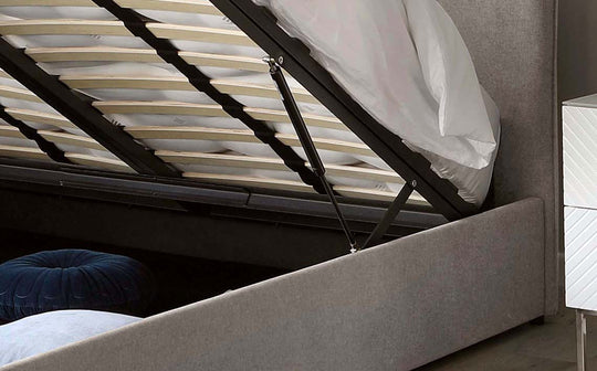 The Turin grey fabric king size bed is a perfect addition to the modern bedroom. Upholstered in a durable, soft-touch grey fabric, this bed offers both style and longevity. The Turin features a spacious storage compartment beneath the sprung slatted base, accessed via a hydraulic lift mechanism. This practical design maximises space in your bedroom, keeping bedding and other items neatly tucked away. Complement the Turin's clean lines with crisp white bedding, textured throws, and scatter cushions, and pair with matching bedside tables for a cohesive aesthetic.Details