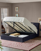 Transform your bedroom into a sophisticated sanctuary with the Turin dark navy velvet super king size ottoman storage bed. Upholstered in sumptuous recycled velvet, this thoughtfully designed piece combines timeless elegance with clever storage solutions. The plump headboard offers exceptional comfort for reading or relaxing, while the spacious ottoman base keeps bedding beautifully organised and out of sight.