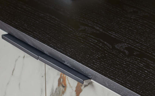 Thoughtfully designed for real life, the Winslow natural ceramic sideboard brings sophisticated storage to any space. Its striking natural ceramic doors feature a faux marble print with gold-toned veining, creating an eye-catching focal point. Perfect for dining rooms, living spaces or hallways, this compact piece offers generous storage behind seamlessly aligned doors with adjustable shelving inside.