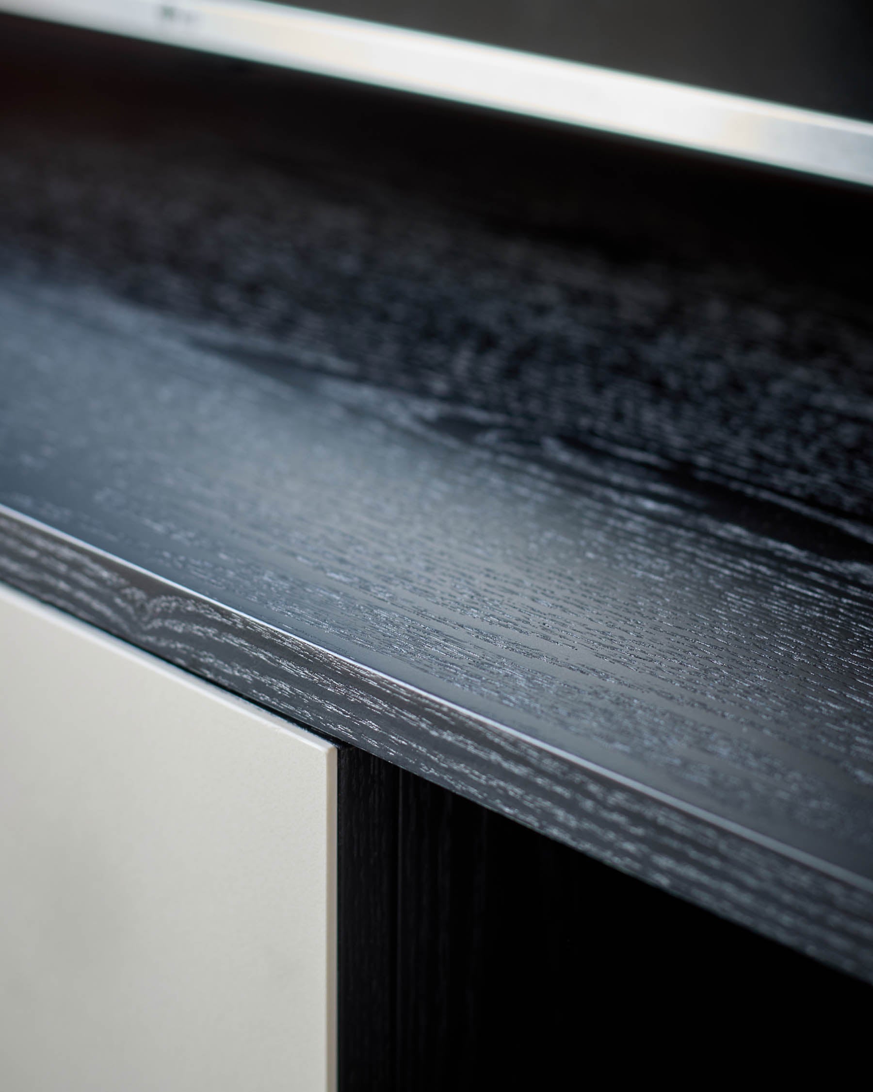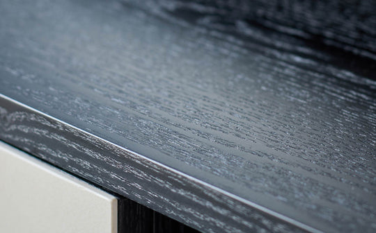 - Deep black oak veneer frame