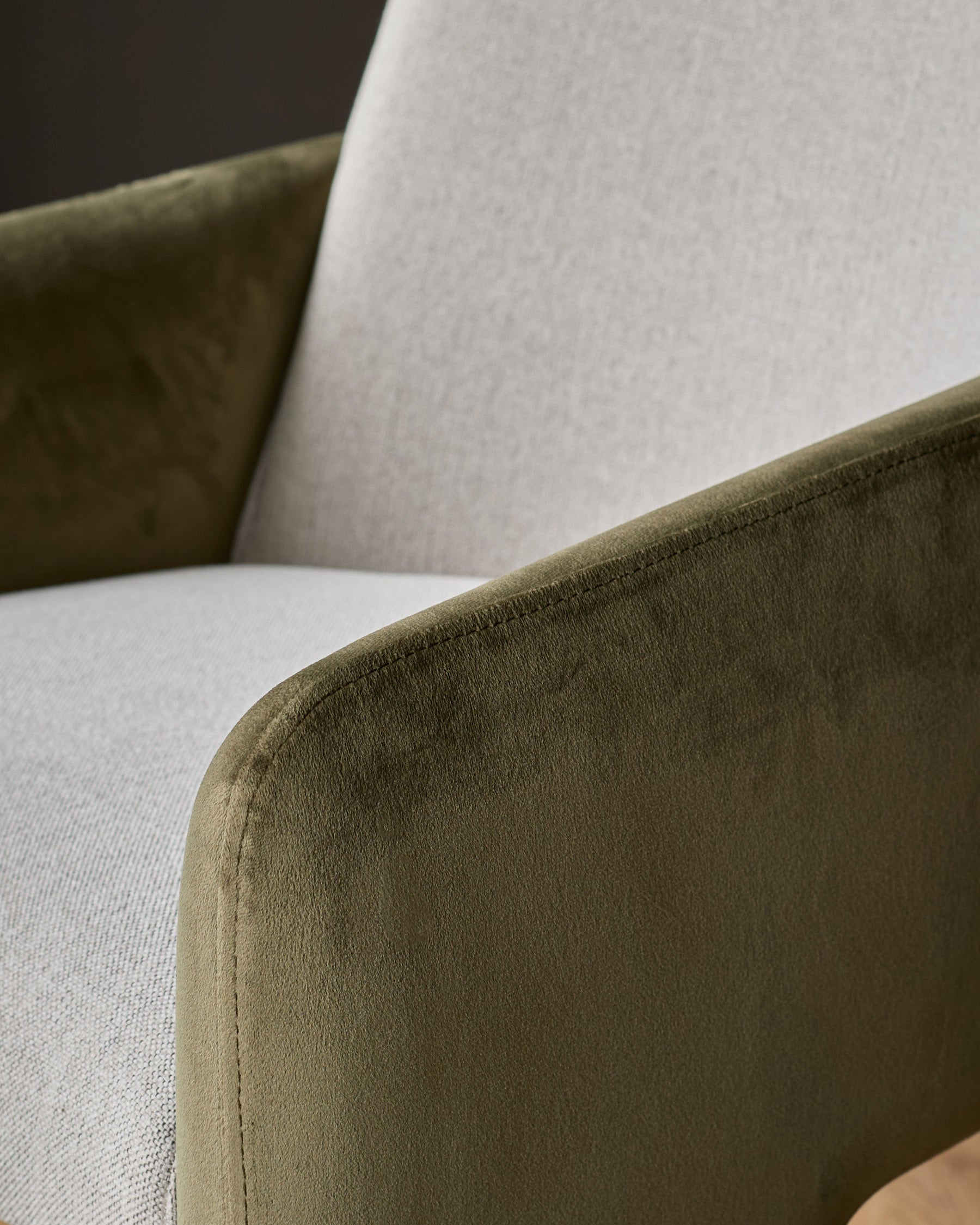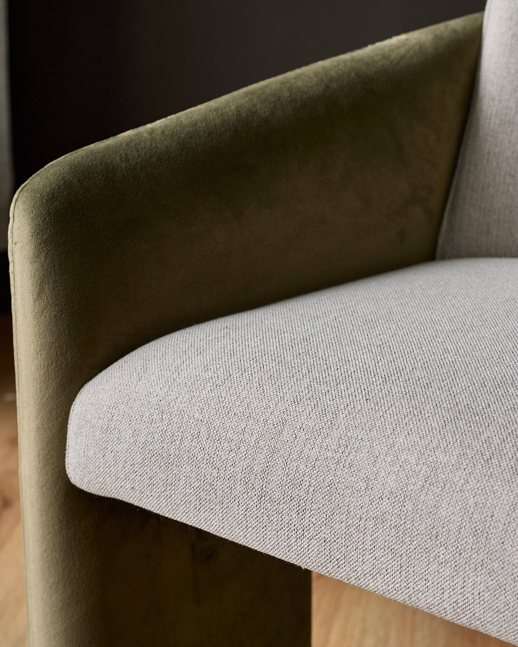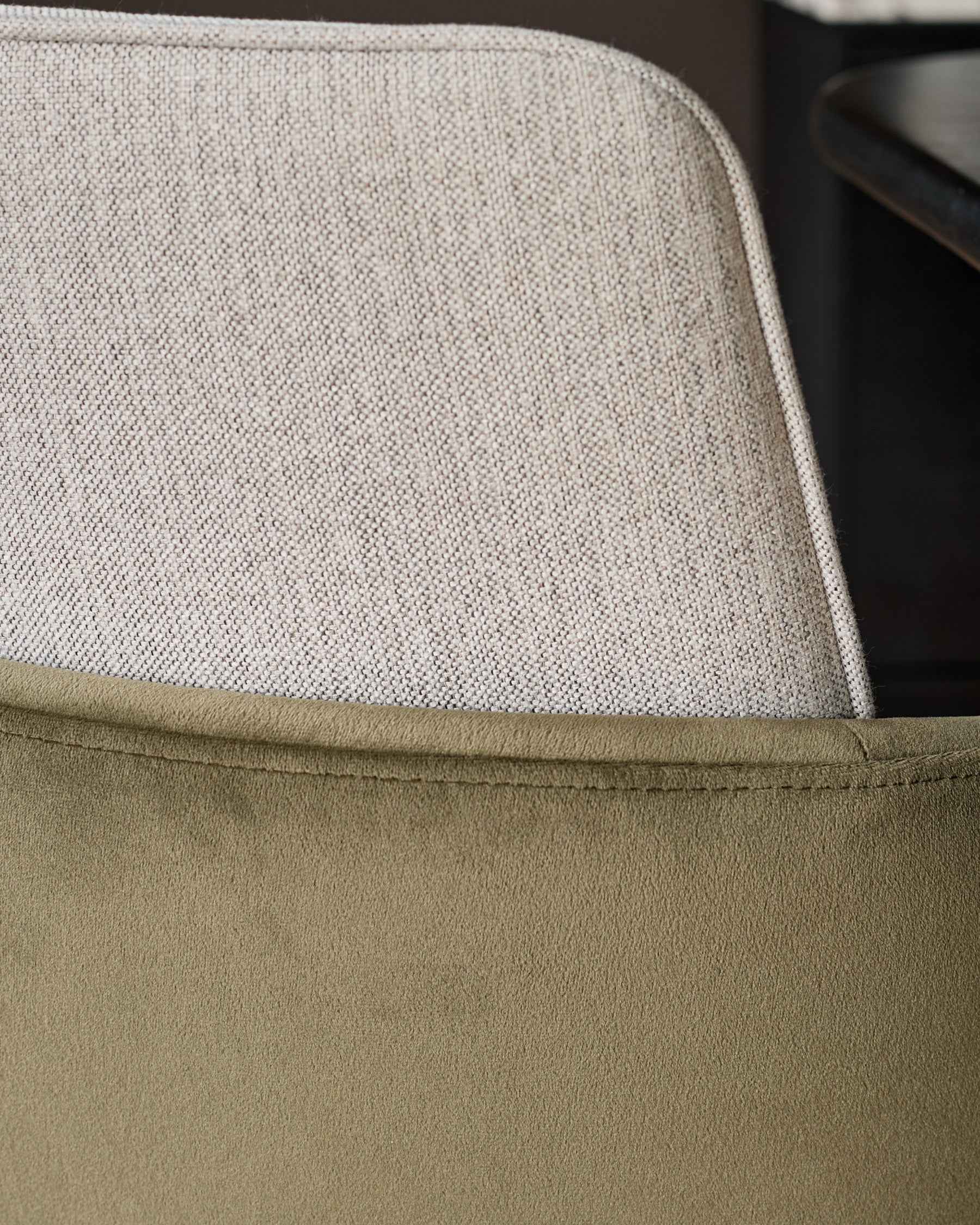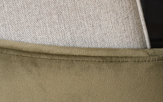 - Olive green recycled velvet backrest with integrated upholstered leg