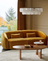 The Zoey ochre fabric 3 seater sofa brings warmth and sophistication to your living space with its gentle curves and inviting scoop arms. Designed for those who appreciate extra room, the generous seating and removable back cushions offer a deeper, more comfortable sit. The rich ochre heritage fabric creates a welcoming atmosphere that's perfect for quiet evenings or gathering with loved ones.